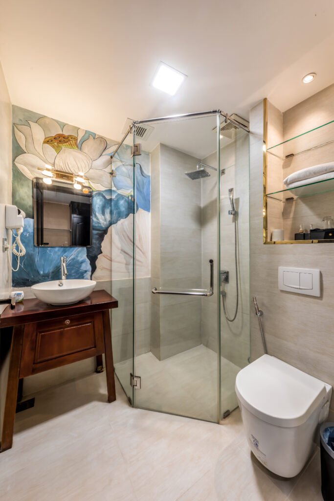 • Phòng tắm riêng hiện đại với vòi sen và đồ dùng cá nhân